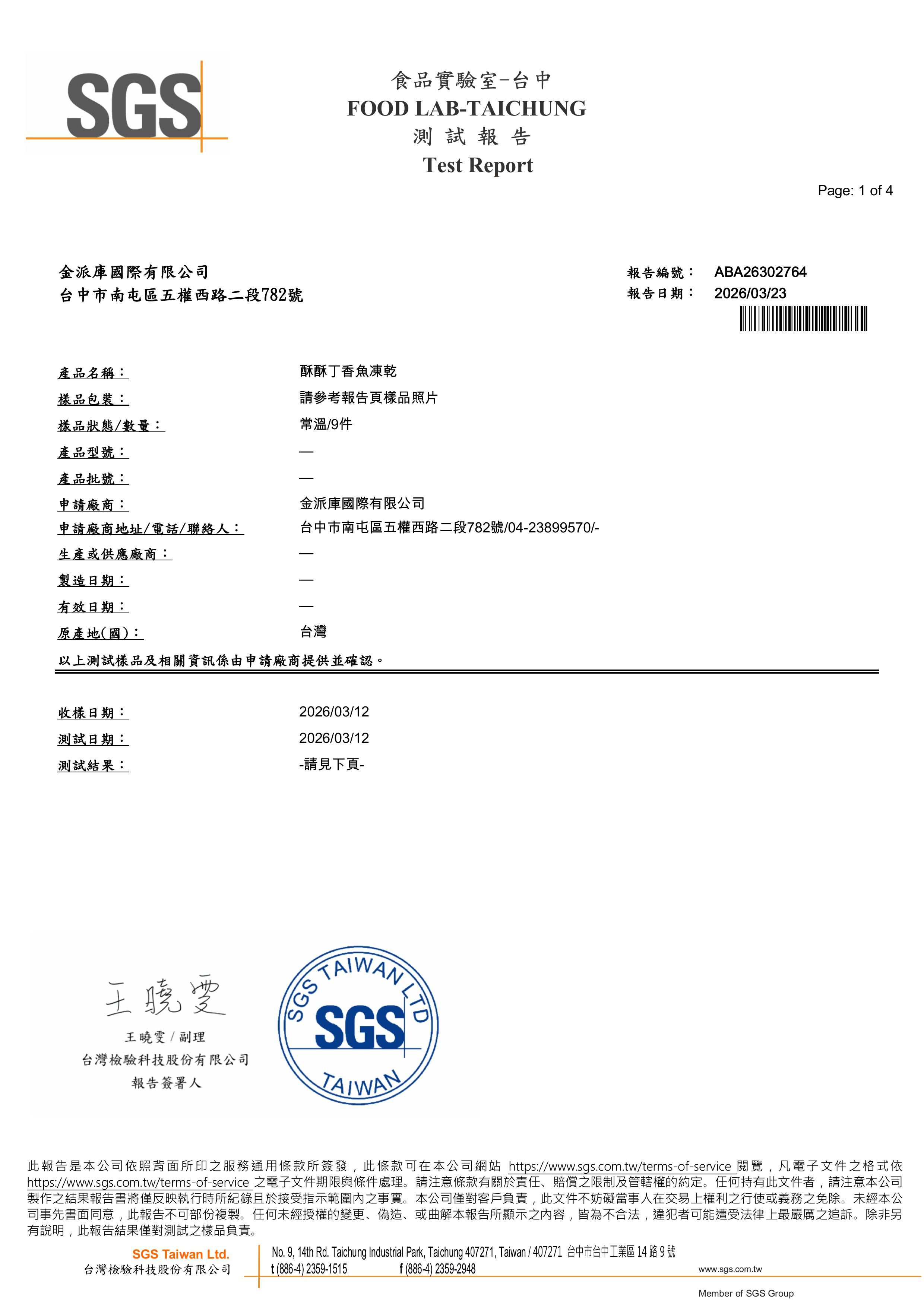丁香2026/10/22批次檢驗報告