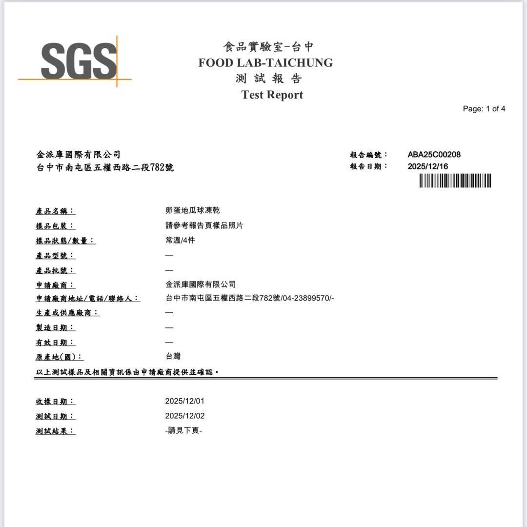 根據最新SGS 檢驗報告(編號:ABA25C00208)結果,產品未檢出異常,符合相關安全標準。